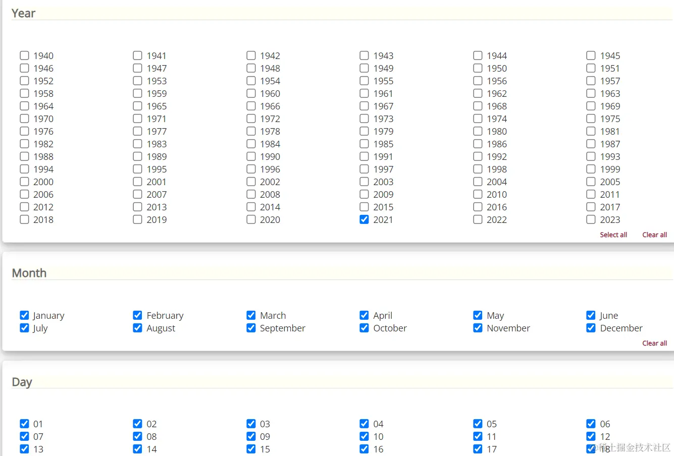 接下来,选择我们需要的年份和日期、时刻。这里需要注意,对于不同的ERA5产品,其能一次性下载的数量也是不同的;如下图所示,我这张图下载的是ERA5数据,它就可以一次性选择多年、多月的数据;但是后面我下载ERA5-Land数据,发现就不能多选年份和月份了,也就是说一次性只能下载一年中一个月的数据。这个可能是由于,ERA5-Land数据的空间分辨率比较高,数据量更大,导致官方限制了ERA5-Land数据的一次性下载的限额。