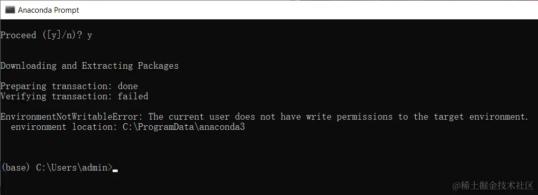 我在第一次配置cdsapi库的时候,出现了如下图所示的报错;这种问题一般就是没有管理员权限导致的。