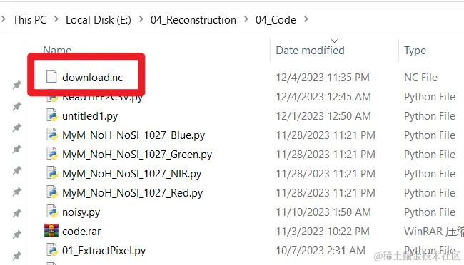 这里需要注意,下载的气象数据默认保存在Python代码所在的文件夹中;如下图所示。