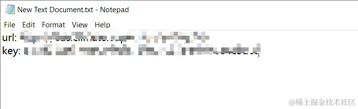 但是实际上,有的时候我们在上述文件夹内是看不到这个文件的;这样的话,我们可以在这个文件夹内新建一个.txt格式的文本文件,并将我们复制的url和key复制到其中,如下图所示。