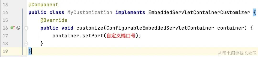 有时候,我们可能需要在代码中动态设置端口,这样就需要通过编程的方式实现了。在Spring Boot中,可以使用ConfigurableEmbeddedServletContainer接口和EmbeddedServletContainerCustomizer接口来完成这个任务。下面是一个简单的示例: