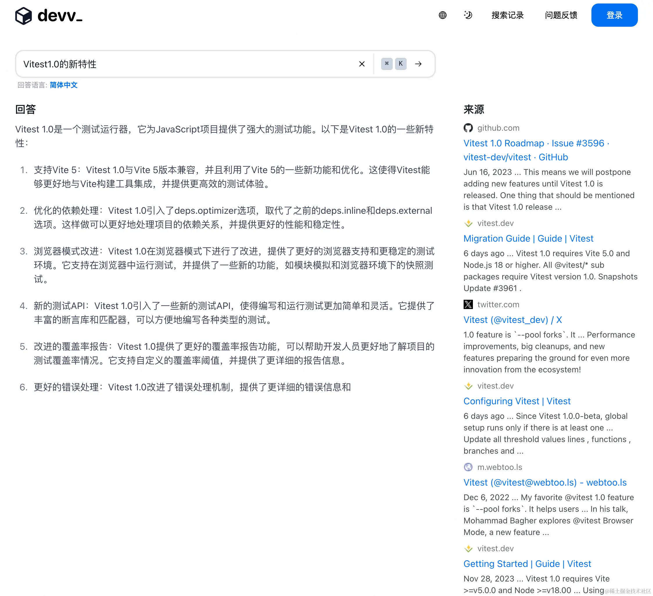 9. Devv - 最懂程序员的新一代 AI 搜索引擎