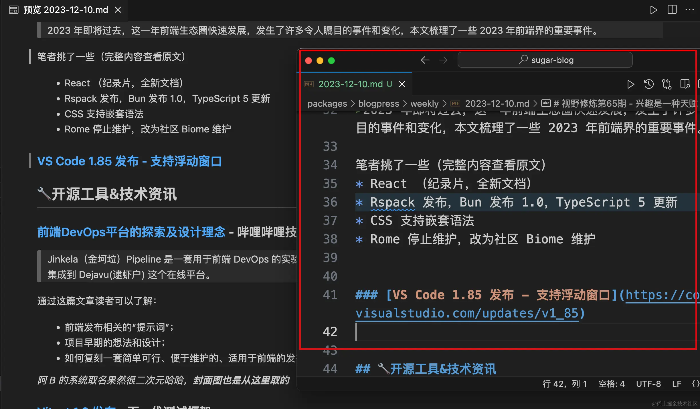3. VS Code 1.85 发布 - 支持浮动窗口