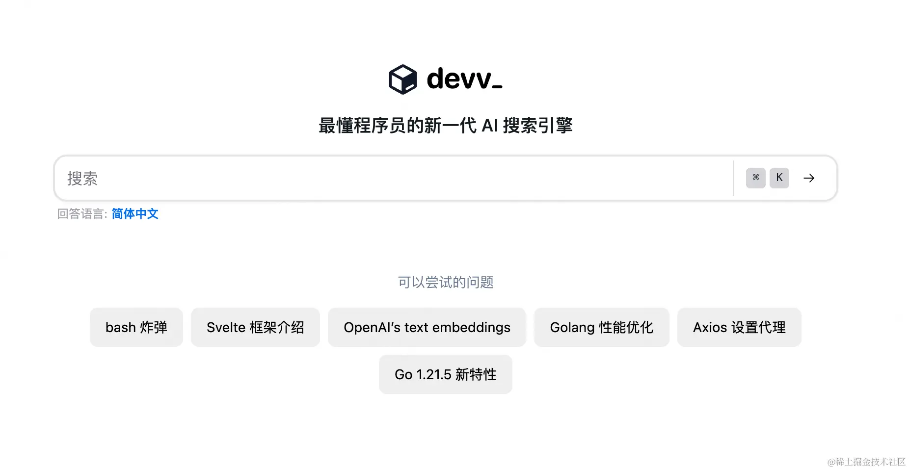 - Devv - 最懂程序员的新一代 AI 搜索引擎