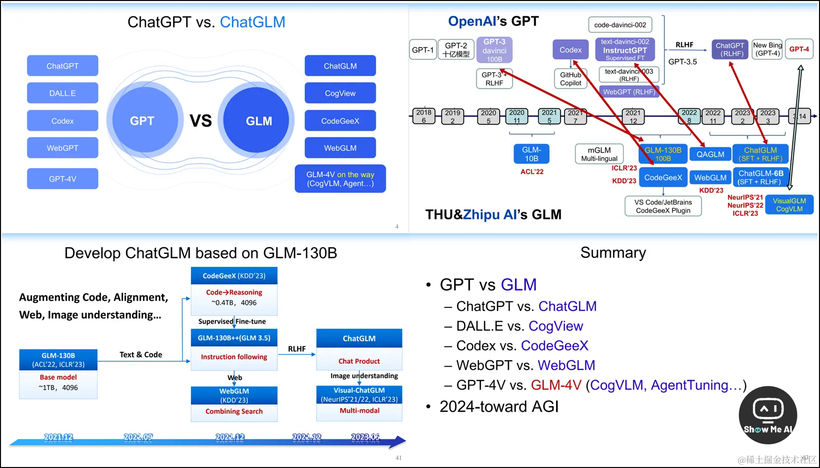 这是 ChatGLM 大模型作者 @ 唐杰** 老师在 ISWC 2023 大会的演讲 keynote,核心内容是 ChatGLM 模型的设计思路、技术创新点和最新进展。