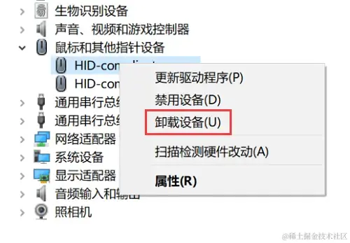 2.在该设备上点击右键,选择【卸载设备】;