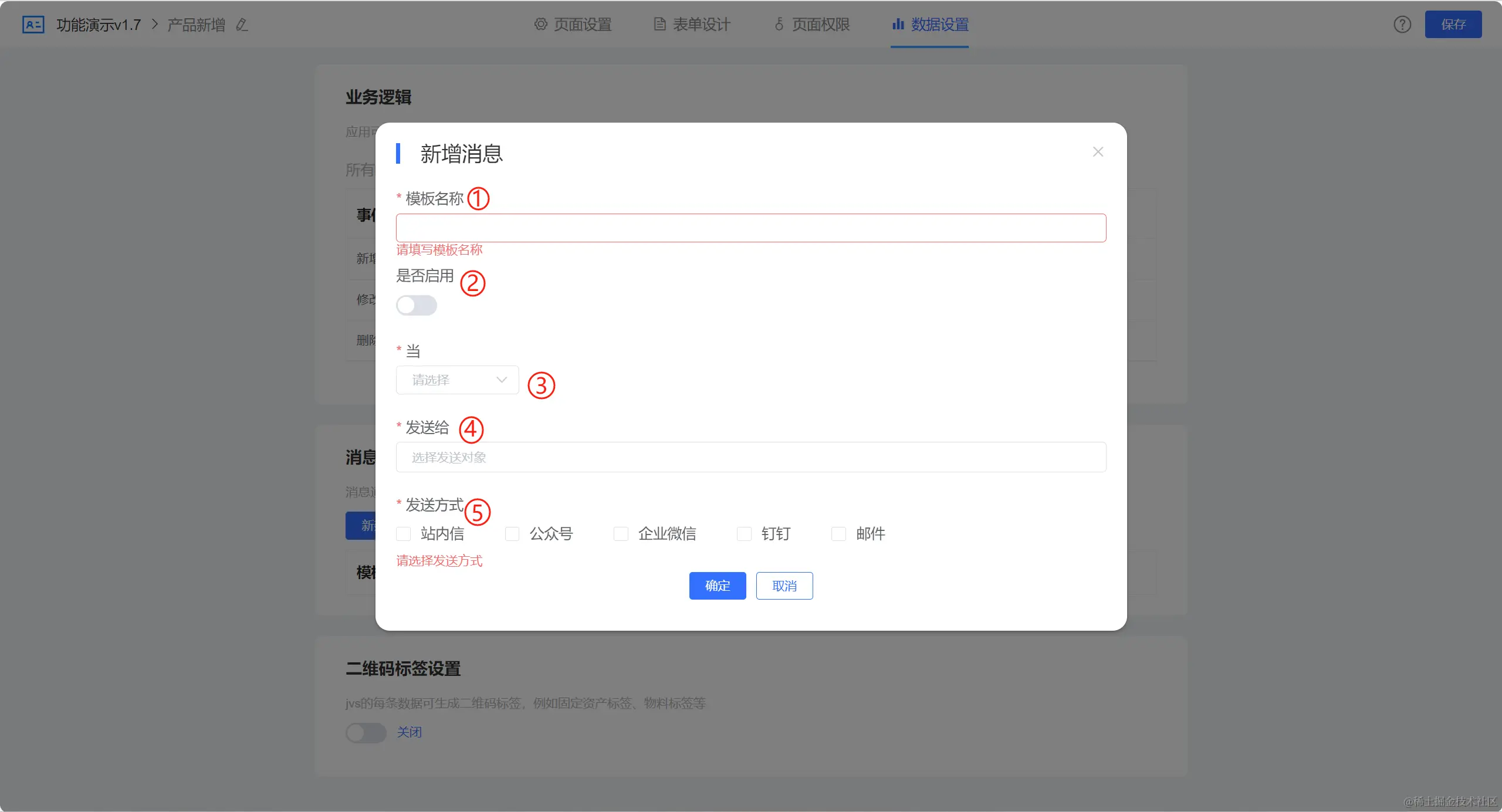 ⑤:发送方式:站内信、公众号、企业微信、钉钉、邮件。