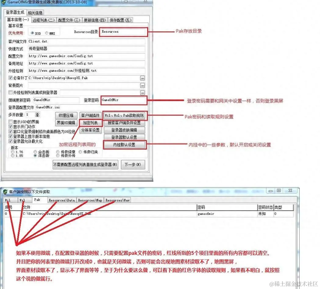 - Pak文件读取规则,详细查看登录器配置器。Pak文件读取规则和Pak密码需要在登录器配置中配置。