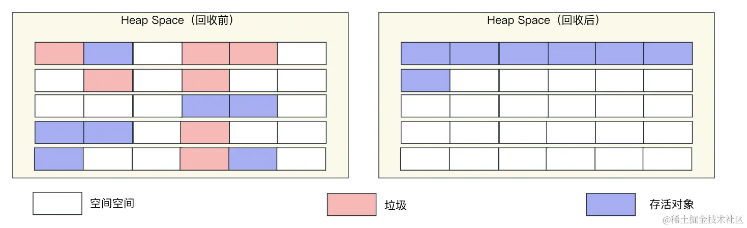 | 避免多余空间浪费 | 相较于复制算法,标记-整理算法不需要额外预留一半内存空间,避免了空间浪费。 |