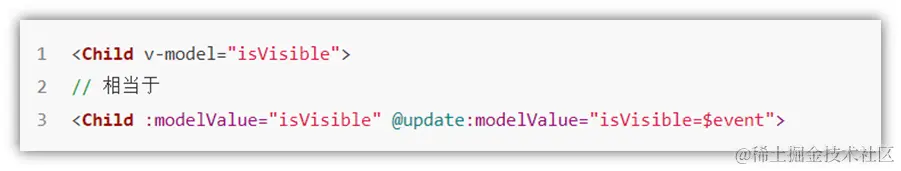 在Vue3中,自定义组件上使用v-model, 相当于传递一个modelValue属性,同时触发 update:modelValue 事件