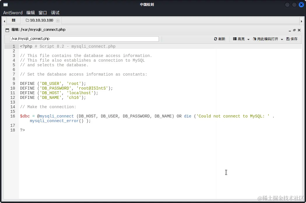 也就是说,/var/www/login.php包含的真实MySQL配置文件其实为/var/mysqli_connect.php,网站目录/var/www下的mysqli_connect.php文件只是一个陷阱。