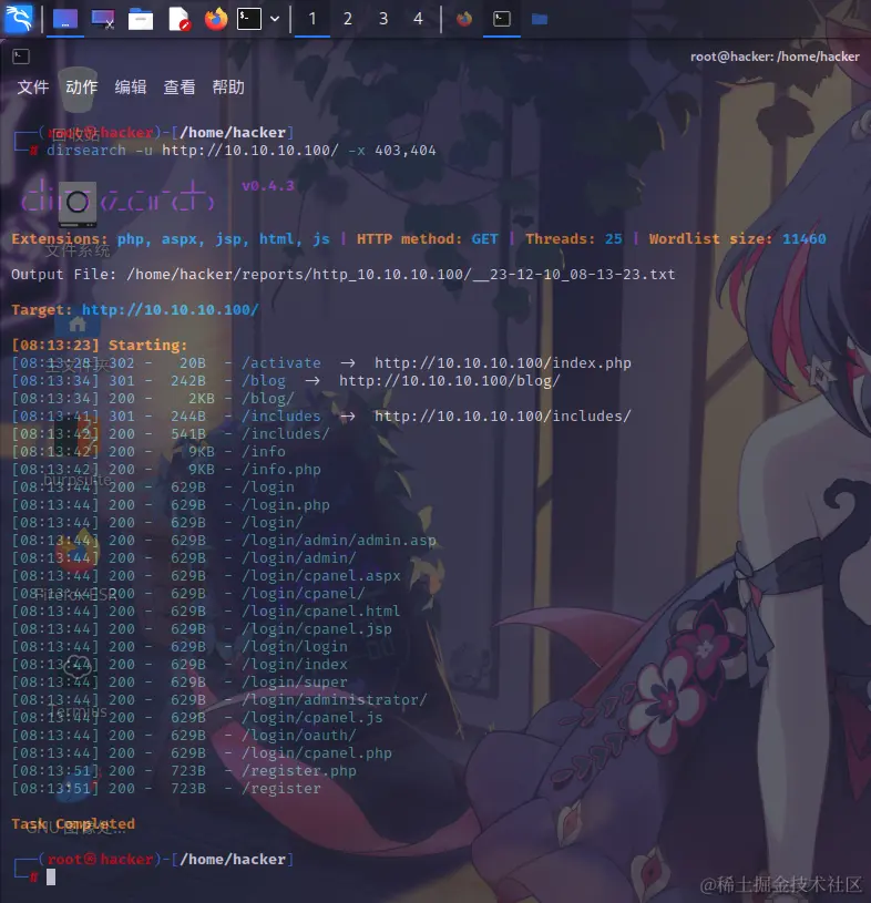 dirsearch -u http://10.10.10.100/ -x 403,404