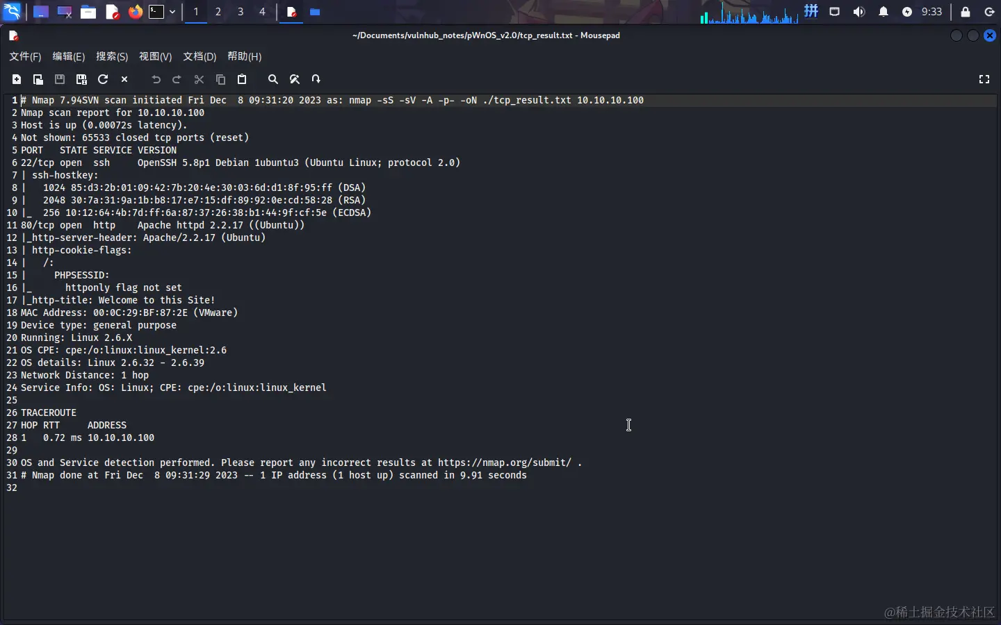 接下来使用Nmap进行探测: