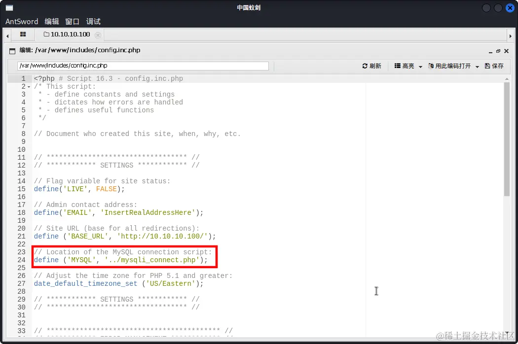 接下来我们查看/var/www/includes/config.inc.php文件: