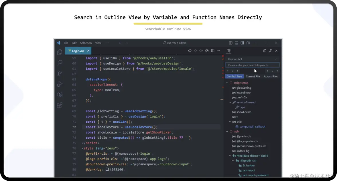 帮助开发者提升开发效率的 VS Code 扩展,开发者@chenbimo,一个更好的outline将代码导航时间缩短 50%:在 IDE 中轻松搜索、浏览和组织变量和函数。项目的演示文稿 Pitch Deck