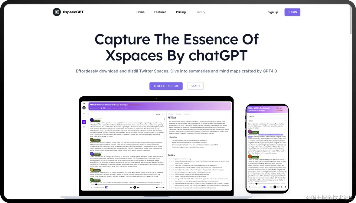 Twitter Spaces AI 辅助工具(音频转文本、翻译、总结、脑图等),开发者@0xjeffrey_xlk,作者后面会支持上传文件音频转文本我们先把地基牢固,目前第一版专注于 twitter spaces 方向,紧接着会开放Library 把大家转录好的 spaces 保存下来 沉淀有意思的spaces内容。项目 Pitch Deck
