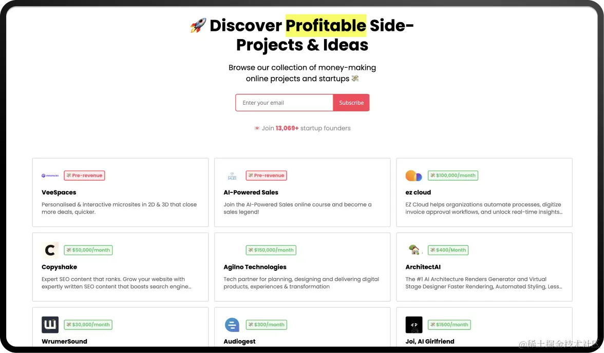 这里收集了很多初创个人或团队的项目,可以看到他们的项目目前盈利情况。你也可以去提交你自己的产品。