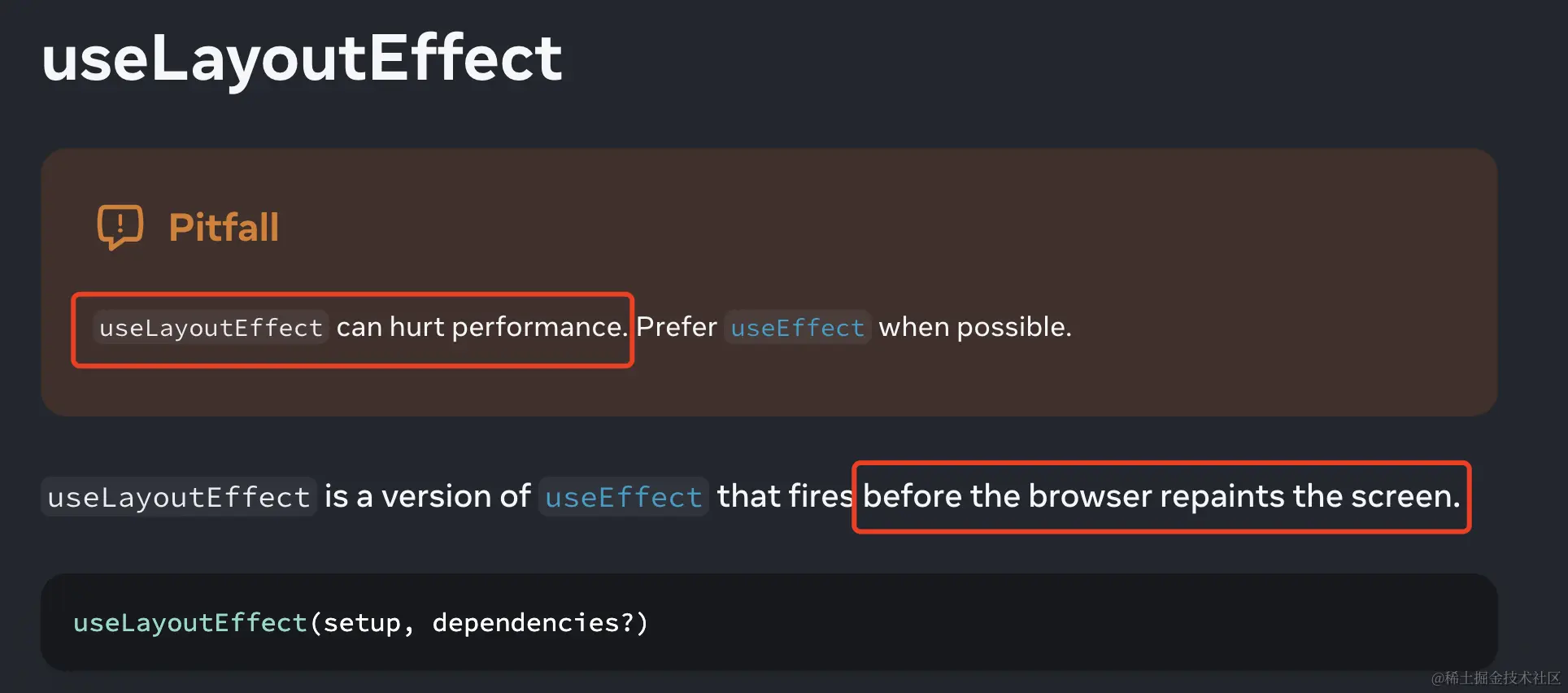 上面的案例说明了,useLayoutEffect可以在绘制之前强制提前刷新effect。而像
