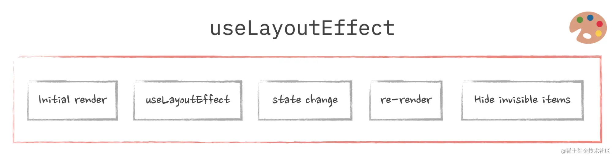 我们在组件内部渲染的任何内容都将与 useLayoutEffect 被统筹为同一任务。即使在 useLayoutEffect 内部更新state(我们通常认为这是一个异步任务),React 仍然会确保整个流程以同步方式运行。