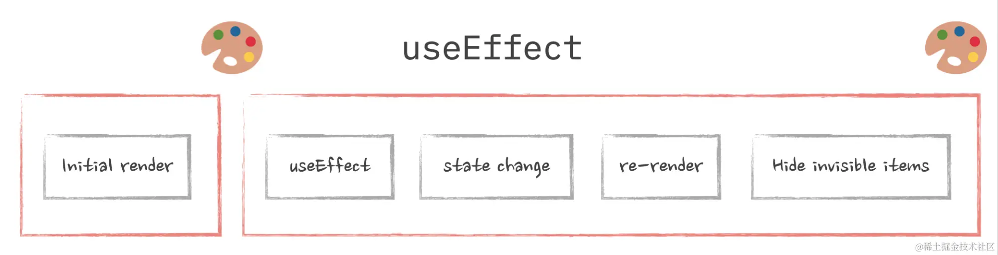 另一方面,使用 useEffect 的流程将分为两个任务: