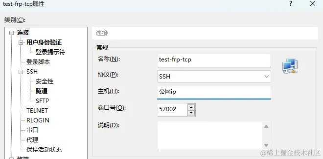 #比如此处是57002,那外网访问服务端公网ip:57002则会被转发访问本配置127.0.0.1:22端口