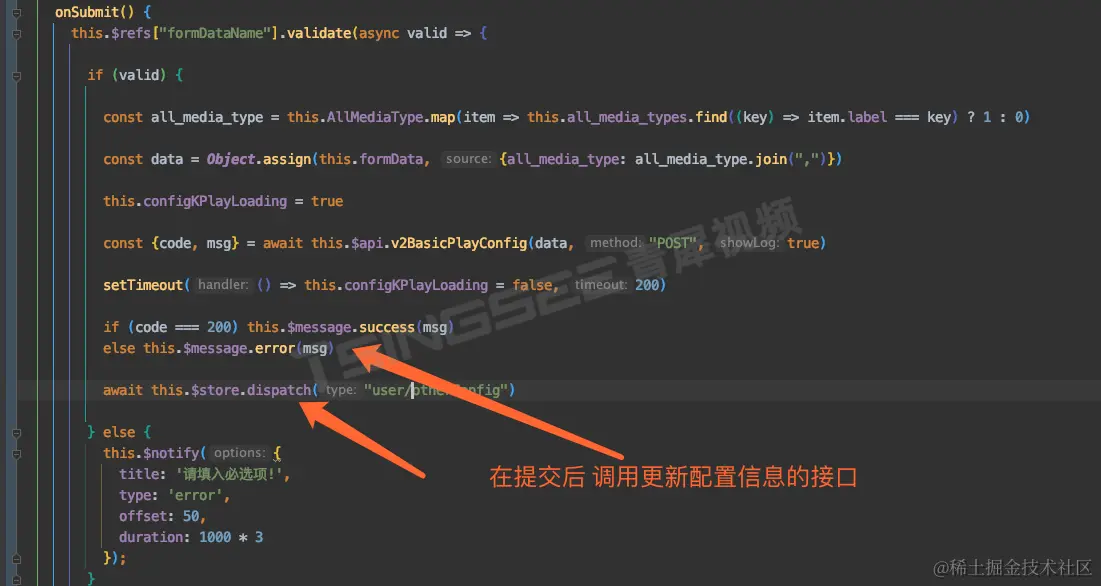 于是添加更新配置接口:await this.$store.dispatch(“user/otherConfig”);