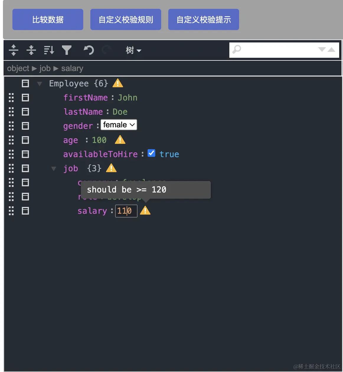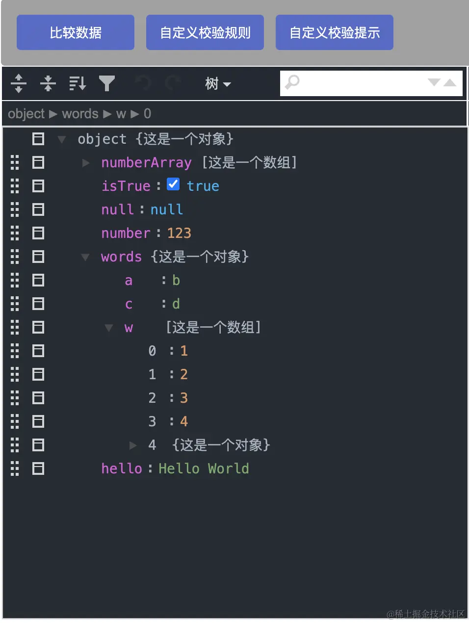 // 在树模式中,JSON在高级JSON编辑器中呈现,重点关注数据内容,而不是每个逗号和双引号。