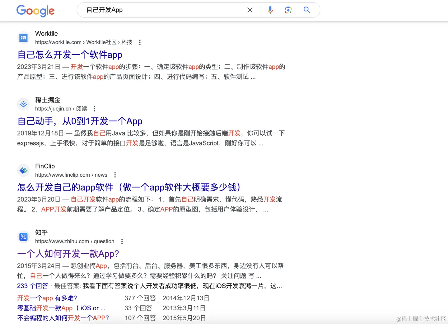 首先,在搜索引擎搜索“自己开发App”,会冒出一大堆类“手把手”的内容,超级详细、稍微浏览一些内容的引言部分,乍一看好像还挺合理,但点击进去,都是一些很条条框框类的内容。