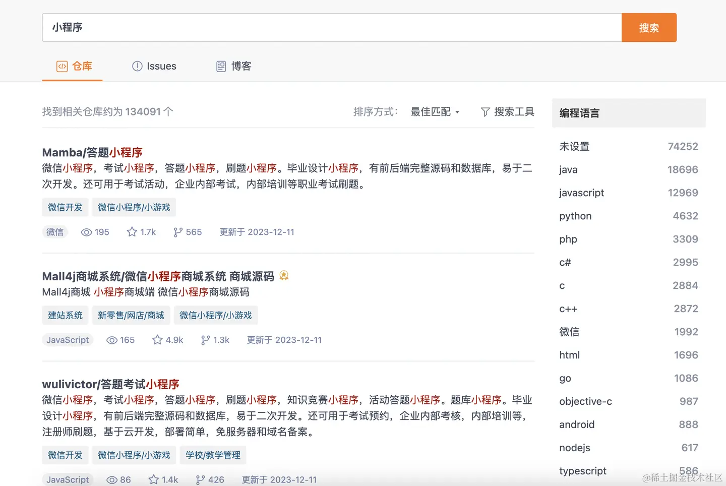 其次,在各大开源模版,或者付费模版上,国内小程序类模版是数量较多、体验较优(总的来说就是性价比高)的一类模版,但看Gitee上就有13W+的小程序应用。这么看来,是不是将自己的想法实现,也不是这么难?