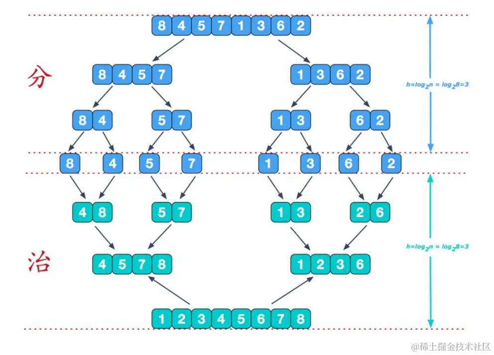 | 归并排序 | nlogn | nlogn | nlogn | n | 稳定 |