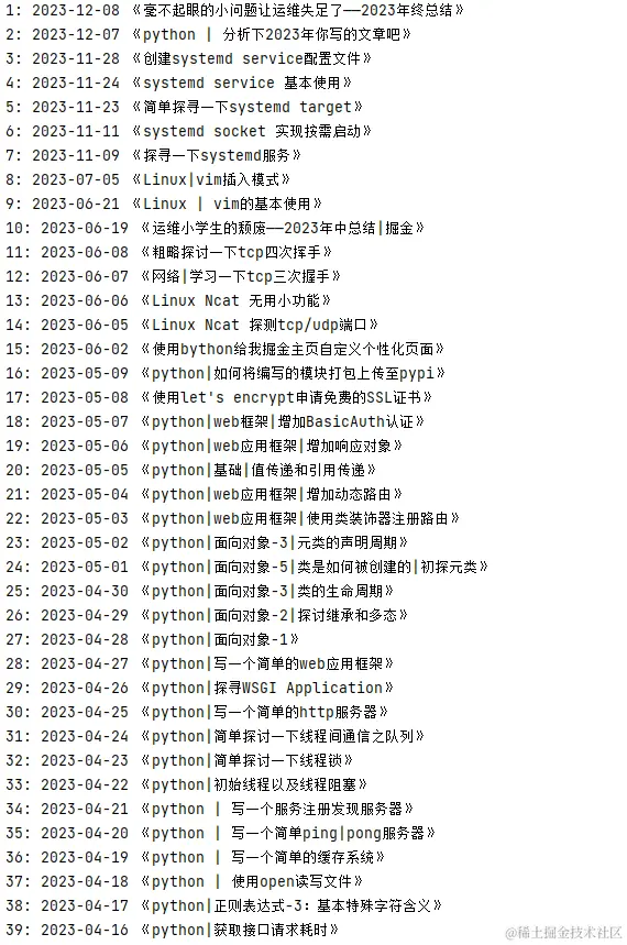 如果想要从2023年写过的文章中挑选几篇最好的文章作为展示的话,我矮子里面拔高个,我最喜欢的是《使用python写一个web应用框架》系列。