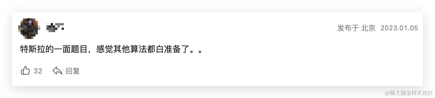 这道题不要说是特斯拉,可能放眼所有存在“算法笔面”环节的互联网公司,也是标准 Easy 水平。