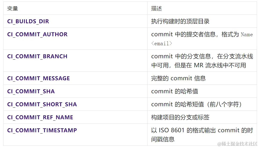 还有很多其他的预定义变量,大家可以在打开下面引用链接的地址直接查看,但是每个变量的用法都是类似的,因为是预定义,所以可以在 CI/CD Pipeline 中像上面的 Demo 一样直接使用,而无需先定义,再使用。