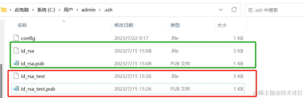 - 先生成各自的ssh秘钥对,注意用不同的文件名称区分,如下图所示: