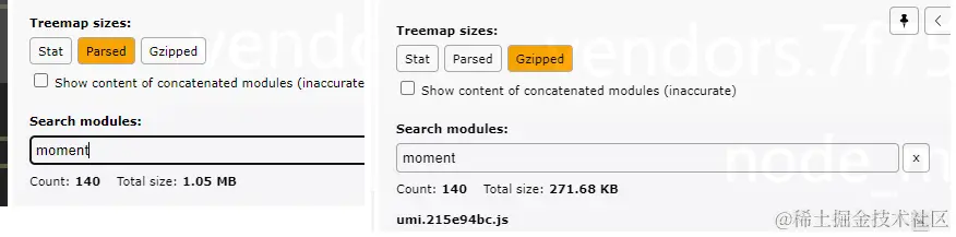 可以看出moment体积大大减小!!