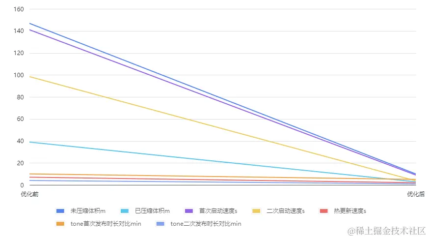 可以看出数据呈现直线下降趋势,效率大大提高!或许一些数据只提升了几分钟甚至几秒钟的效率,但当我们在开发一个版本时,不停修改保存打包代码,次数不断累加时,就会发现效率产生质的飞跃!
