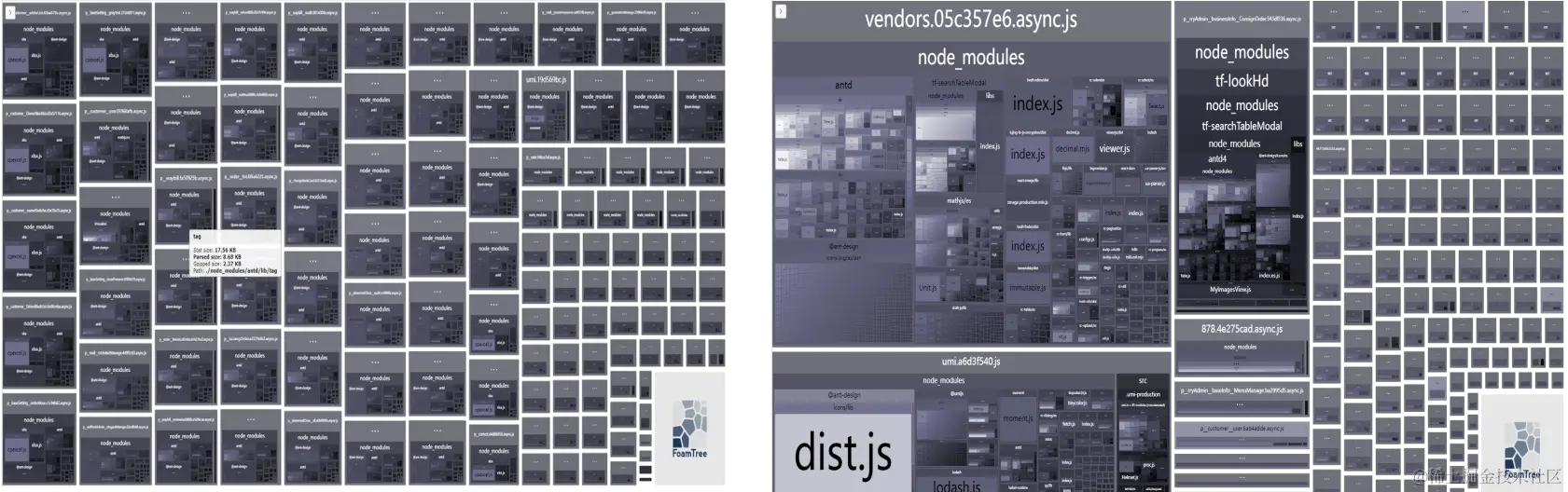 - 很多公共的模块出现在多个chunk里面,比如antd相关等