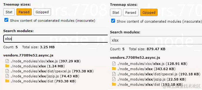 通过externals引入后,xlsx/react-dom/react依赖将不再占用包内存! 大约减少了5mb!