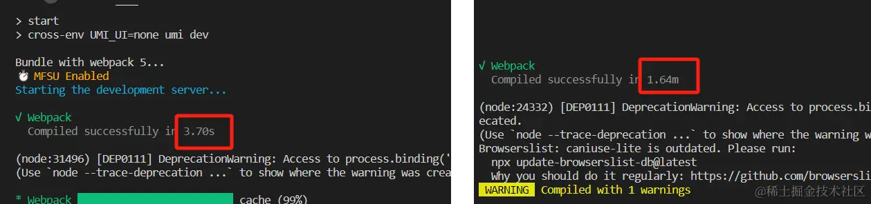 Umi 默认编译 node_modules 下的文件,带来一些收益的同时,也增加了额外的编译时间。如果不希望 node_modules 下的文件走 babel 编译,可通过以下配置减少 40% 到 60% 的编译时间
