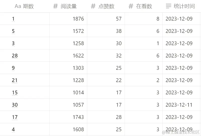 我在多个平台上发布了周刊,阅读量更加不好统计,因此这里只公布公众号里的数据吧: