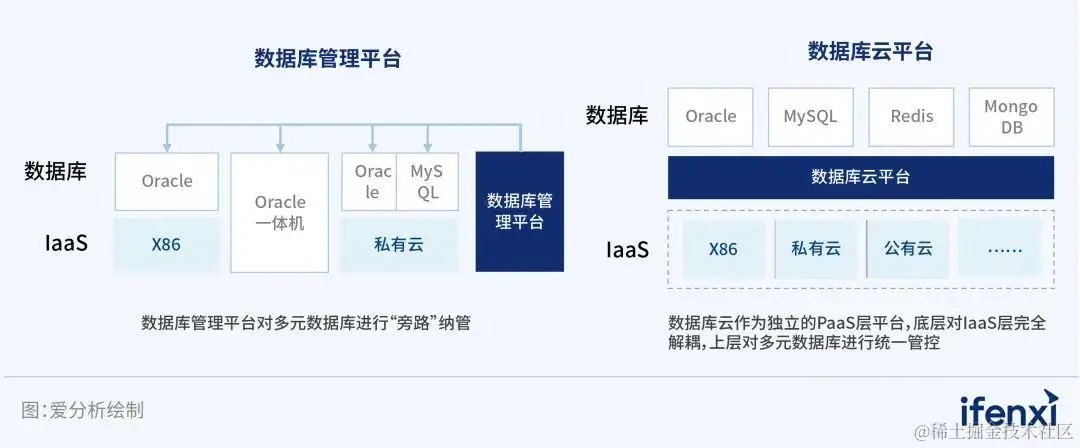数据库管理平台与数据库云平台架构对比示意图