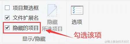 3.勾选 【隐藏的项目】选项。此时,隐藏的文件和文件夹将显示出来;
