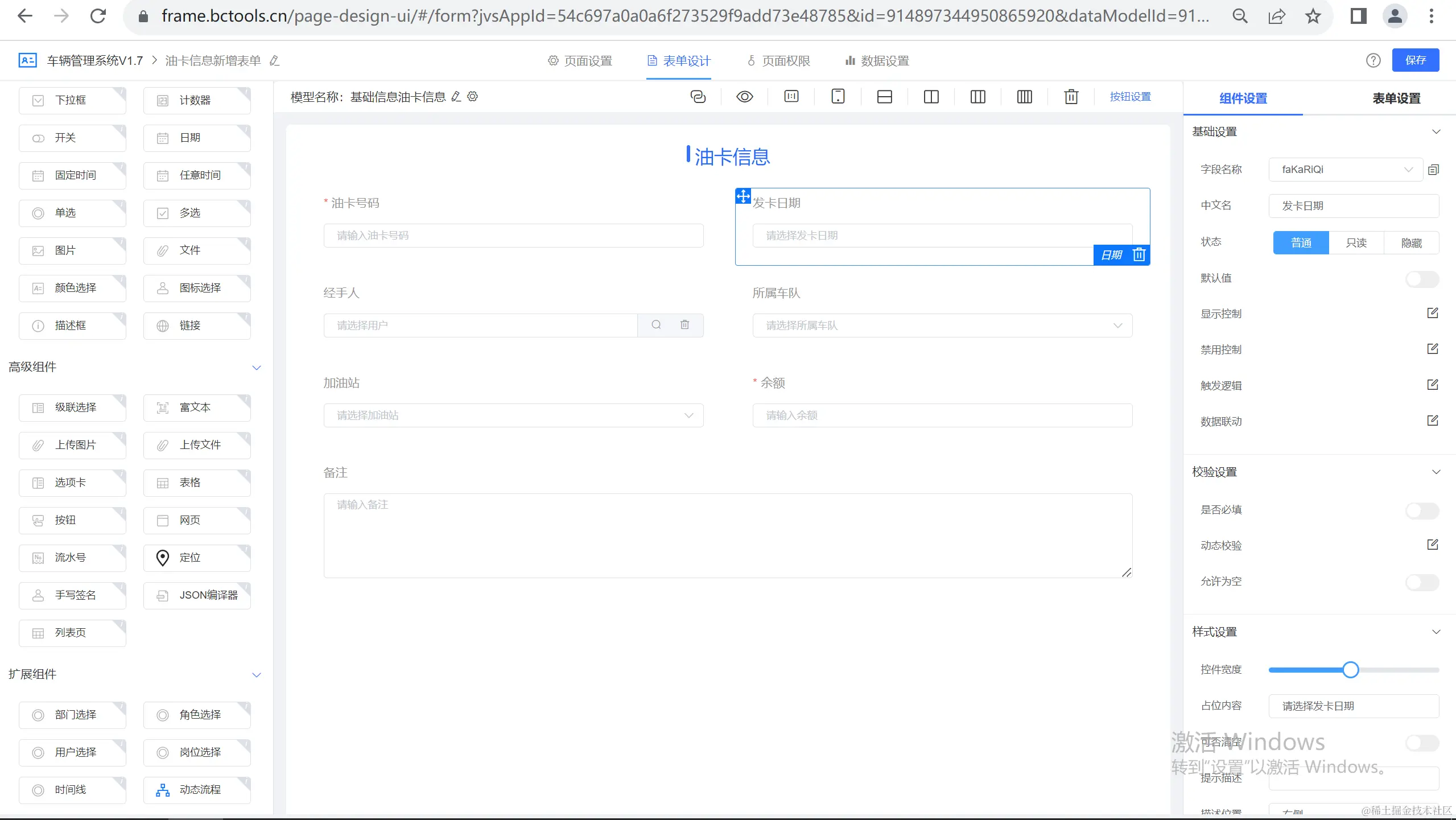 表单设计器包括页面信息设置、表单可视化设计、页面权限设计、联动数据处理。