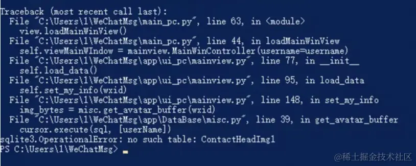 如果出现如图所示的报错信息,将app/database/msg文件夹删除,重新运行main_pc.py。