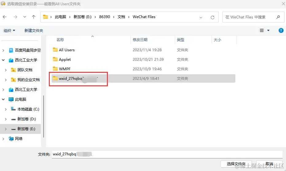 点击设置微信路径按钮,选择该文件夹路径下的带有wxid_xxx的路径(没有wxid的话先选择其中一个文件夹不对的话换其他文件夹)