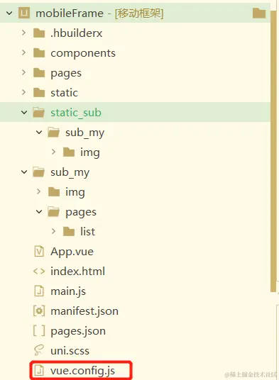 vue.config.js代码:static_sub静态文件分包目录和分包目录要一致