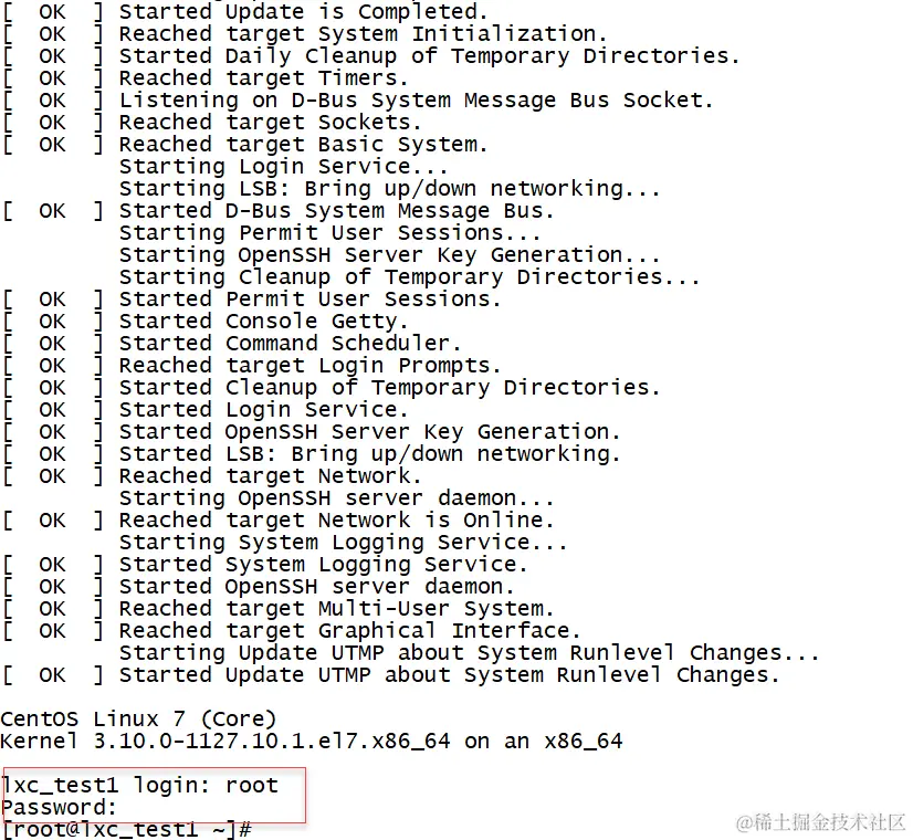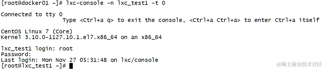 [root@docker01 ~]# lxc-start -n lxc_test1 -d