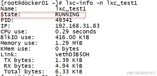 [root@docker01 ~]# lxc-info -n lxc_test1