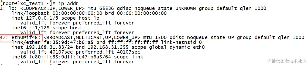从容器里看到的自身网卡设备编号47,对端网卡设备编号48: