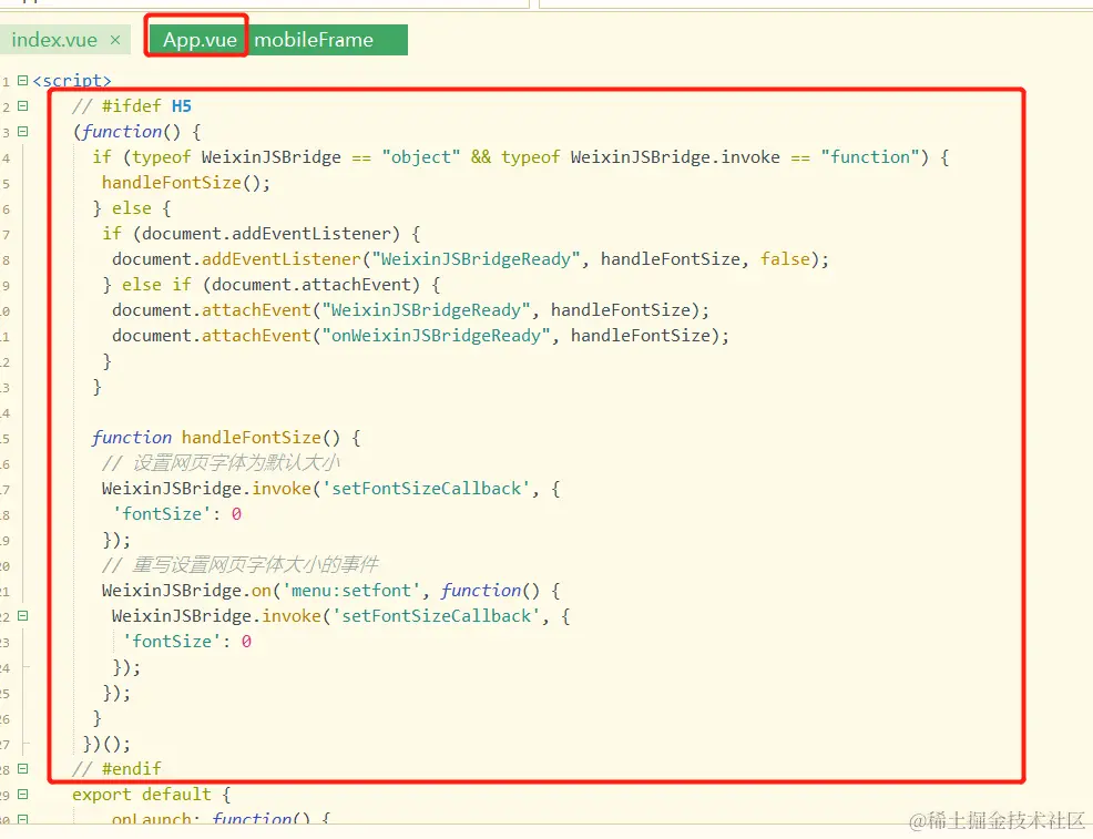 在App.vue的代码修改成一下代码(安卓手机)
